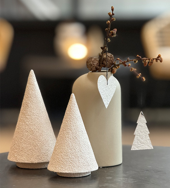 You can with great advantage combine these small ornaments with many of OOhh's other Christmas decorations from both the pulp series and the collections zero waste paper, recycled paper, ecofelt and more.