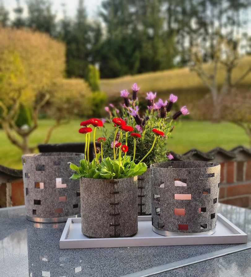Outdoor eco-felt pot w/loop + plant bag, Grey